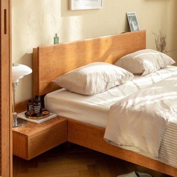 枝间敦敦实木悬浮床北欧日式实木床全实木樱桃木主卧小户型双人床
