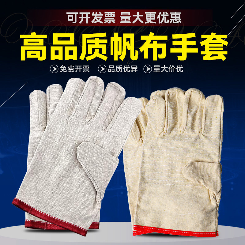 帆布手套劳保耐磨耐用工作男双层全衬加厚工业防烫耐高温专用手套