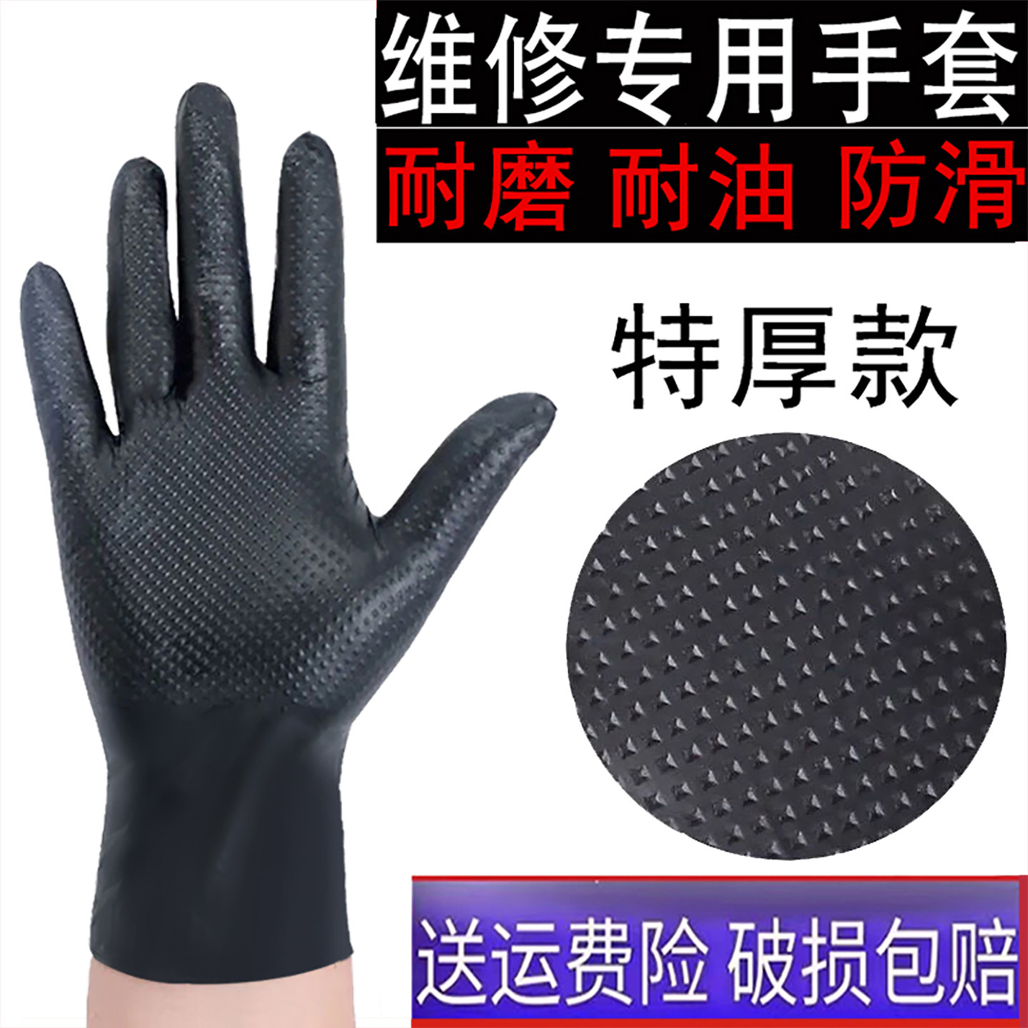 特厚一次性丁腈橡胶手套钻石纹防滑耐油耐酸碱工业级劳保耐磨修车