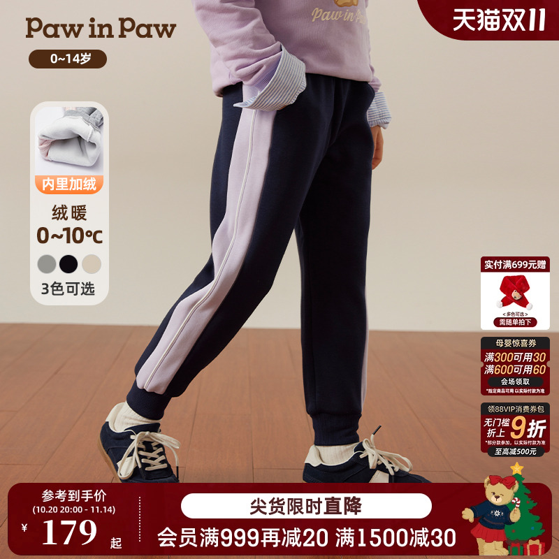PawinPaw卡通小熊童装秋冬女童女宝宝加绒针织裤束脚宽松