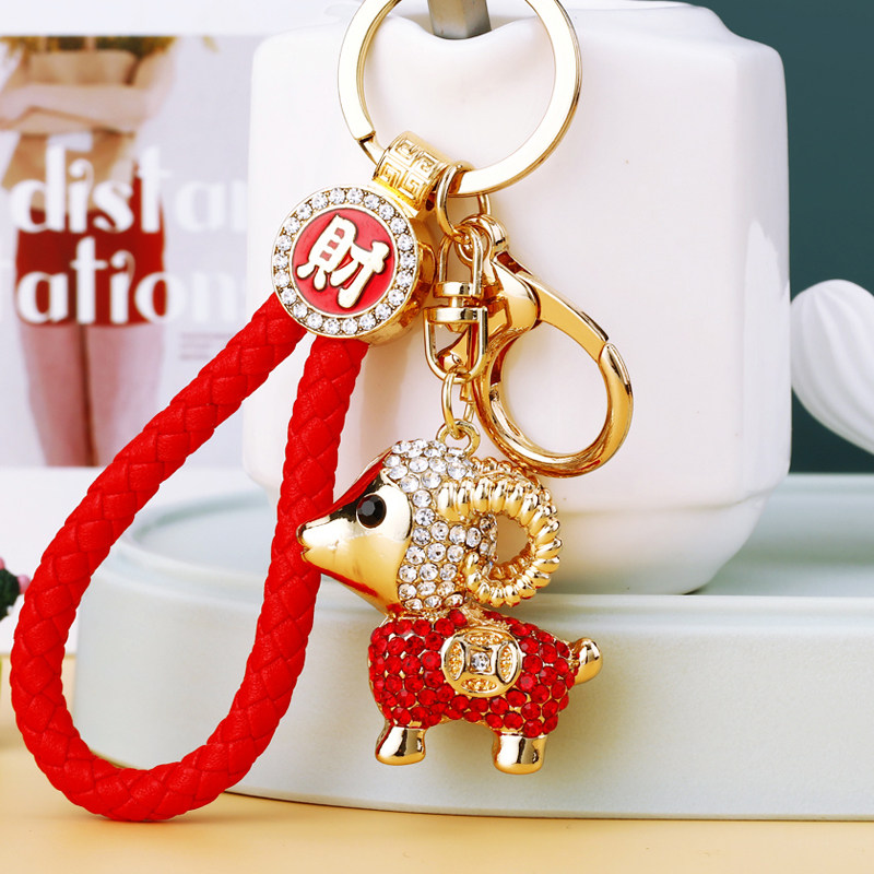 韩国可爱创意少女心招财小羊汽车钥匙扣女水钻包挂件钥匙链圈礼品