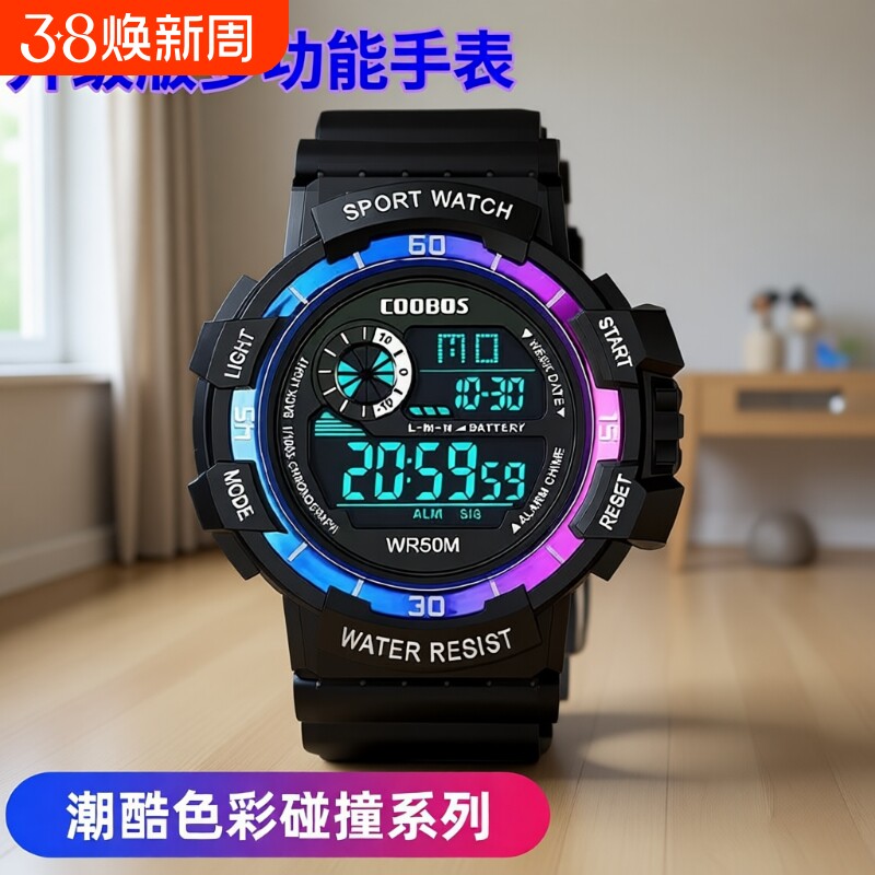 电子手表男学生初中高中生运动男款青少年儿童男生防水多功能闹钟