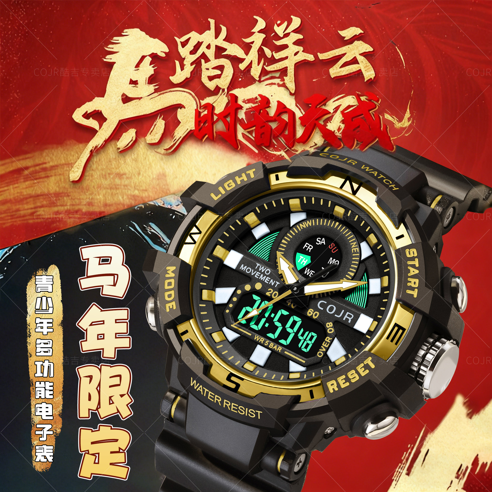 马年限定手表男款初中学生高中男生青少年儿童运动防水机械电子表