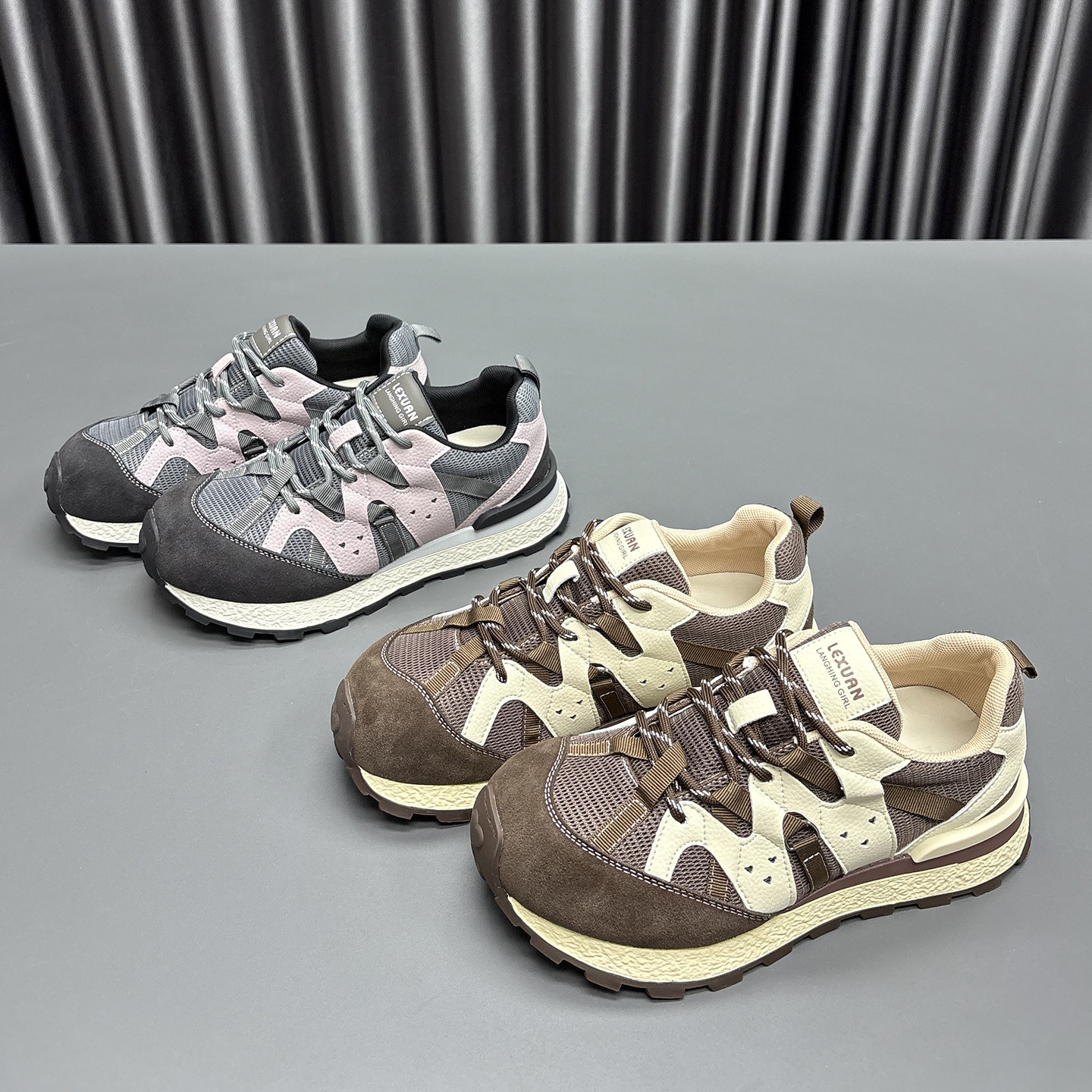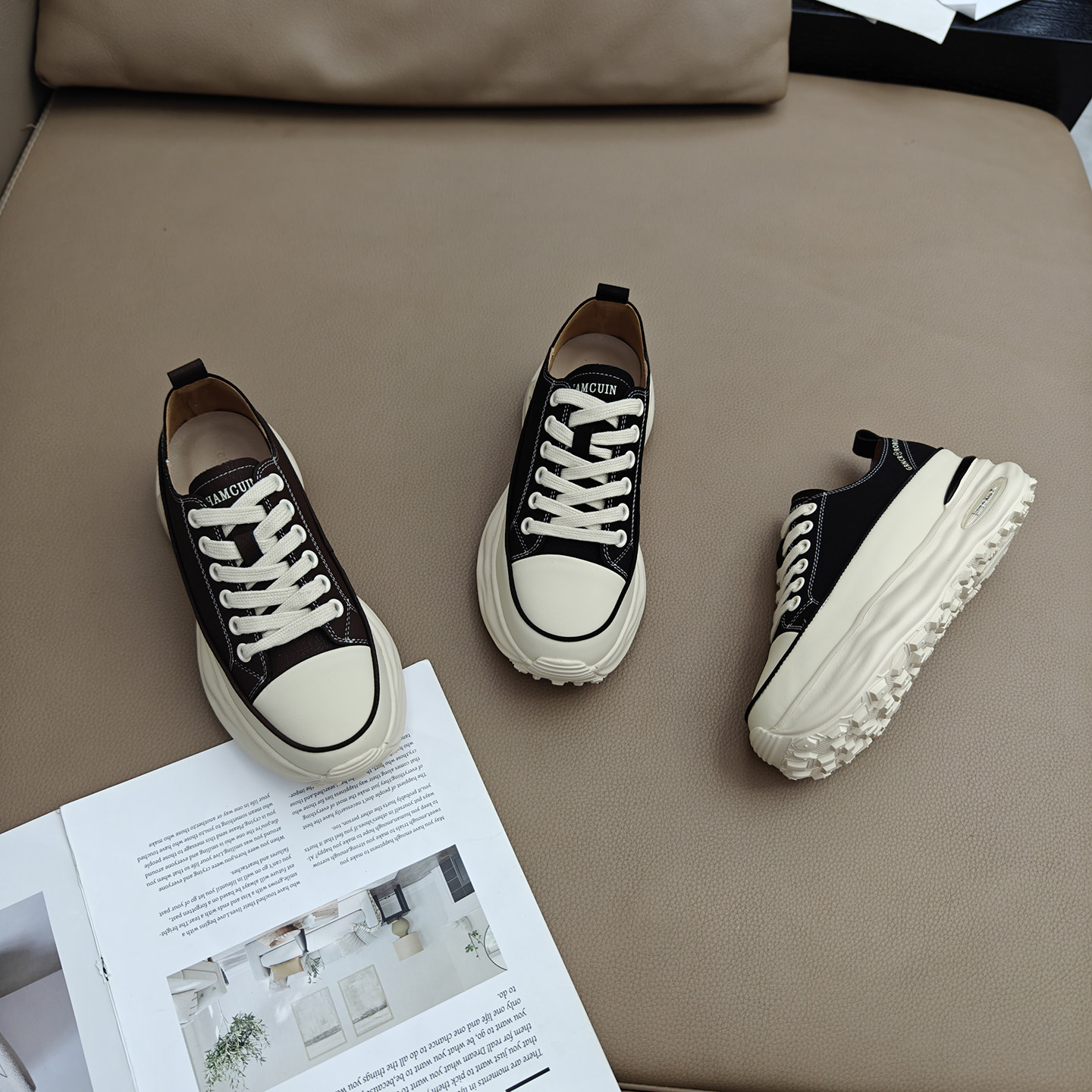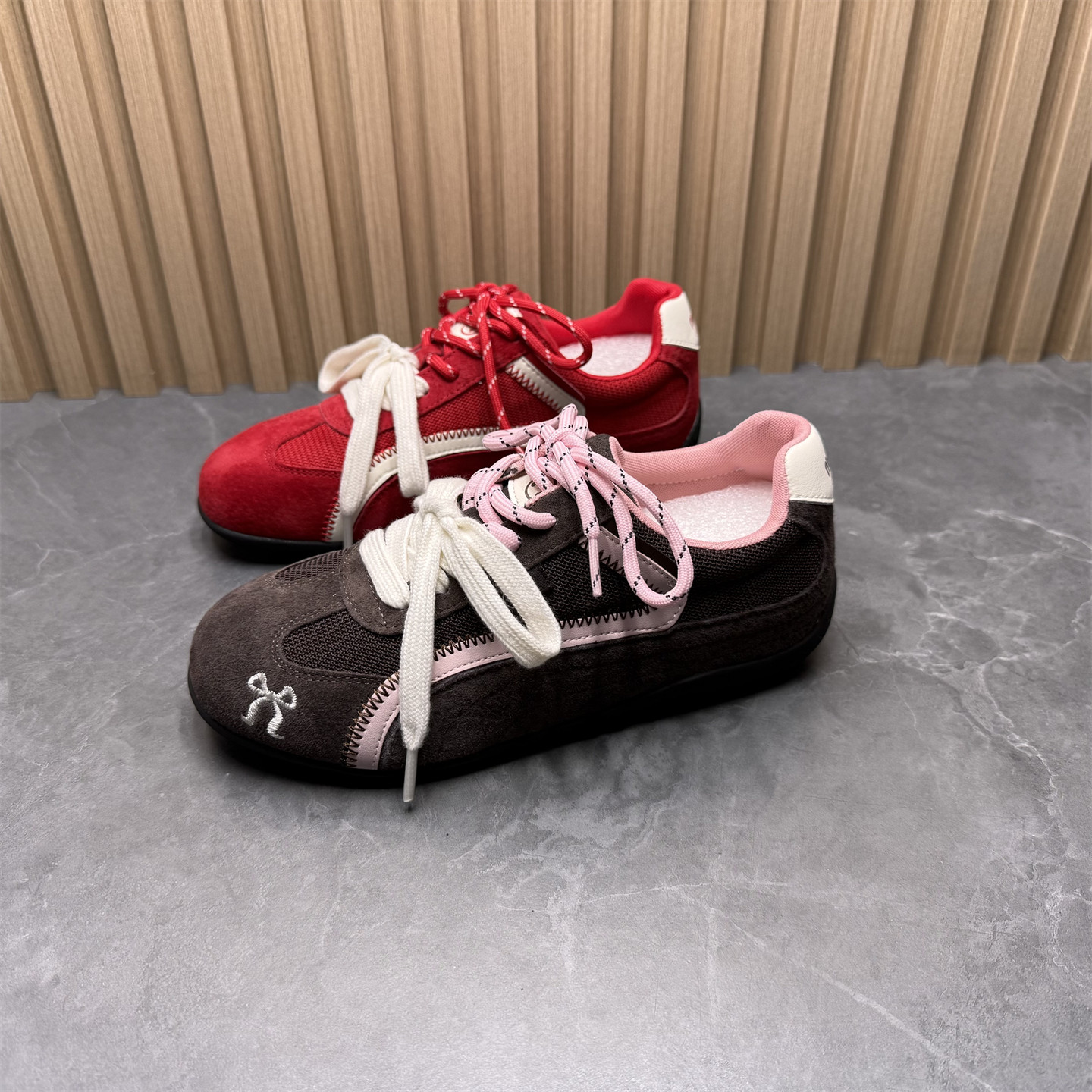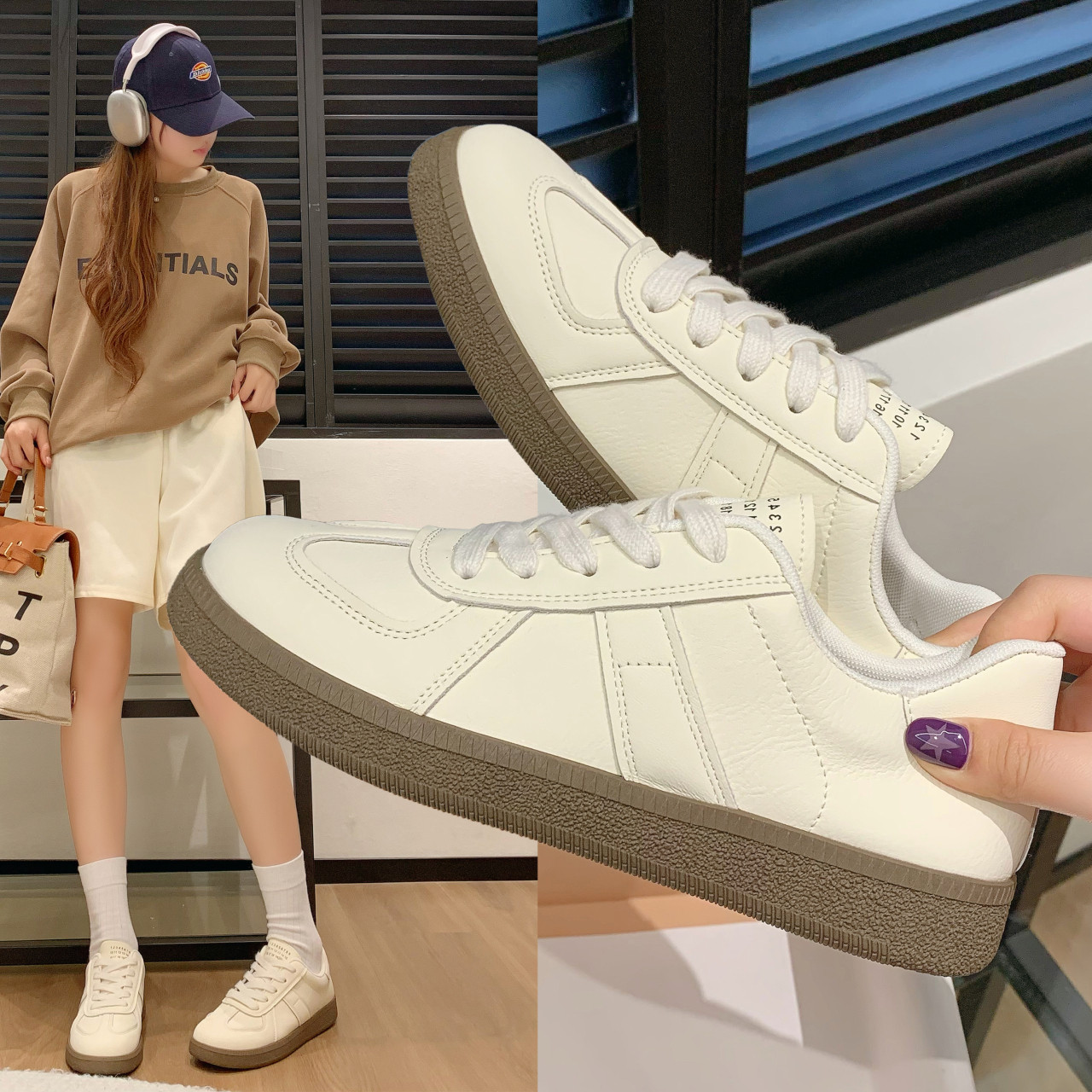 2025新款时尚百搭圆头厚底舒适女鞋真皮系带德训鞋运动板鞋跑步鞋