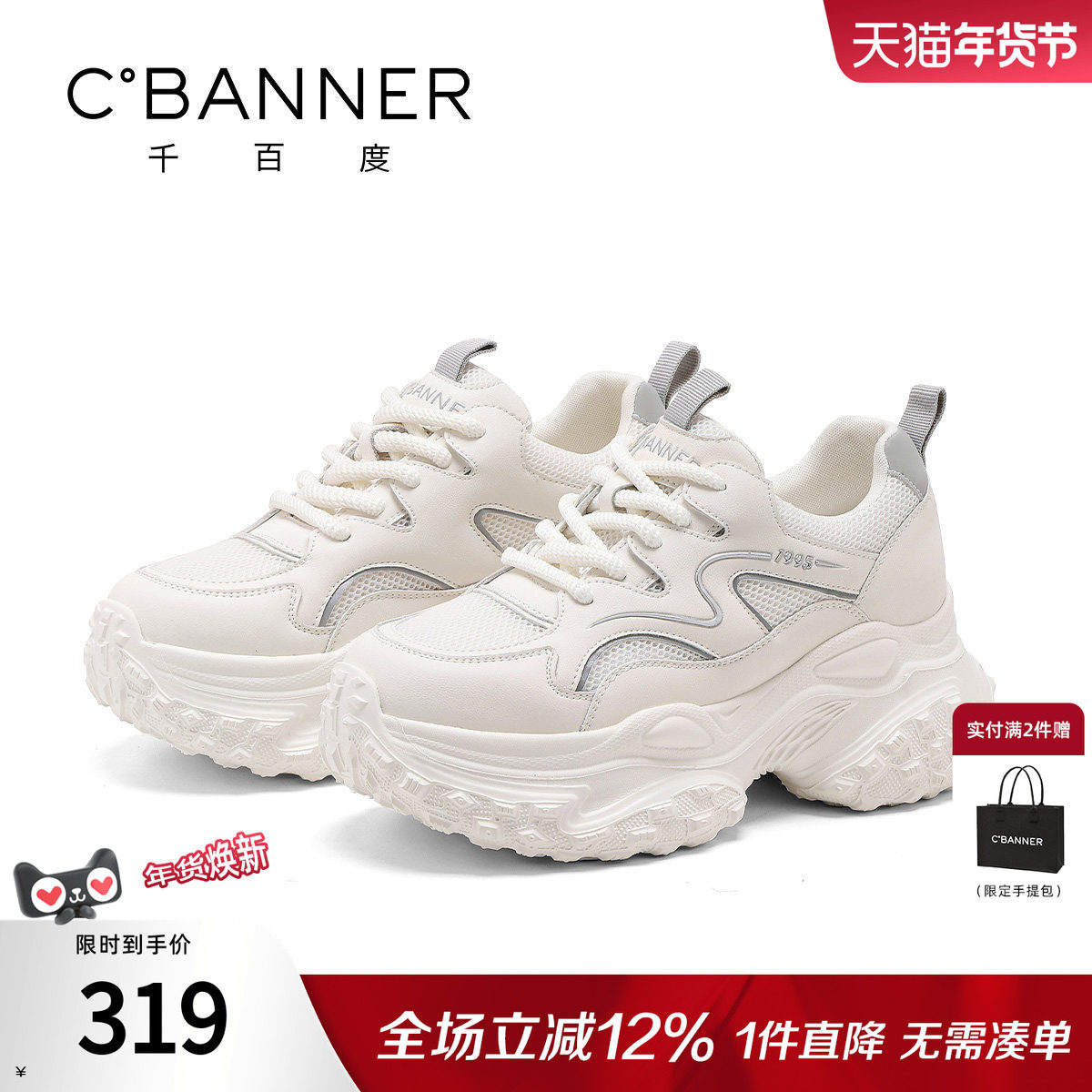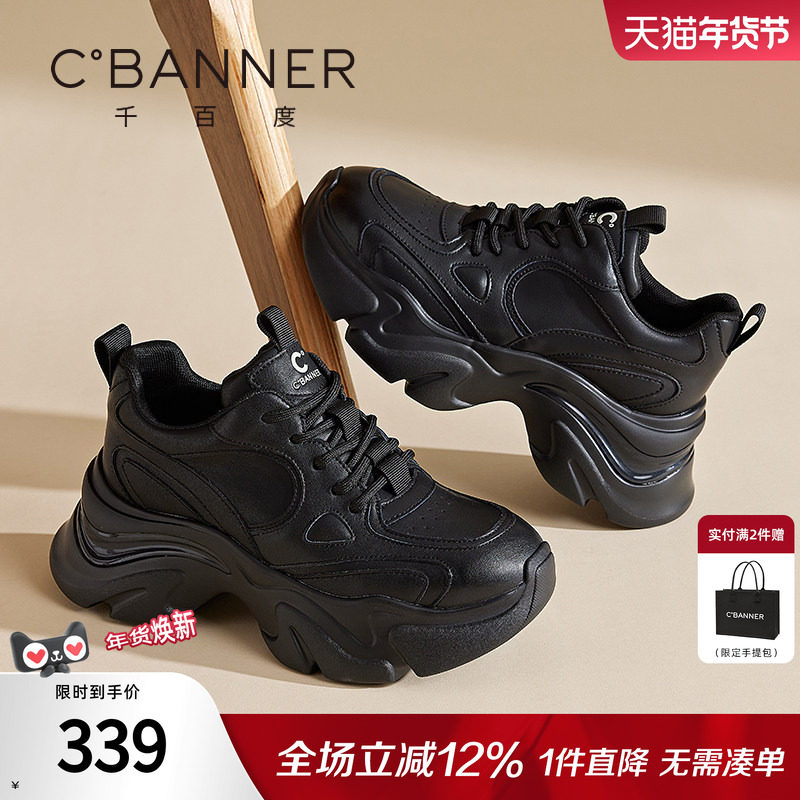 千百度女鞋纯色新款老爹鞋女厚底增高休闲鞋百搭运动鞋系带跑步鞋
