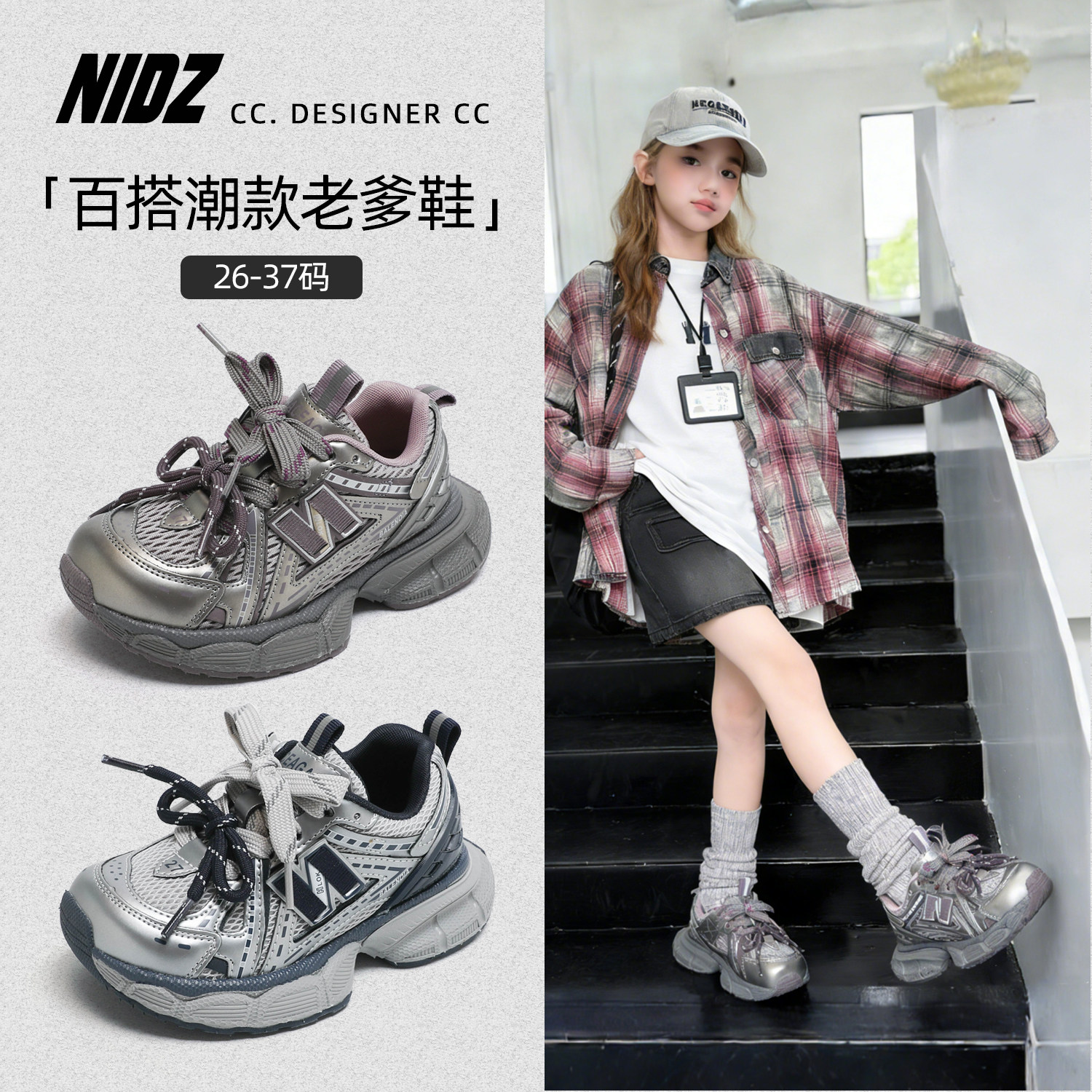 NIDZ双系带儿童老爹鞋2026春季新款女童休闲运动鞋百搭轻便跑步鞋