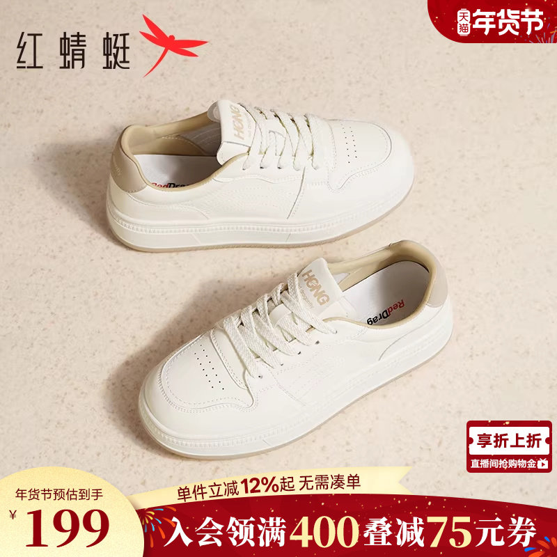 红蜻蜓休闲板鞋女款春秋女鞋厚底系带百搭小白鞋休闲运动跑步鞋女