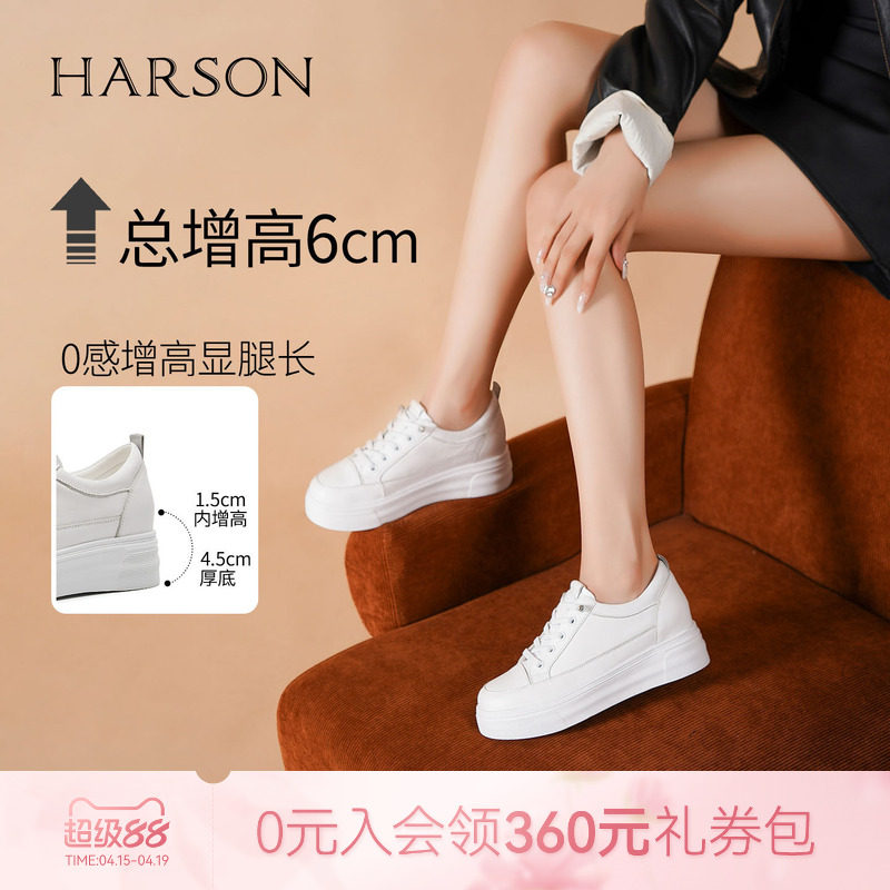 哈森厚底小白鞋女春夏舒适百搭内增高平底女鞋运动板鞋HWC220161