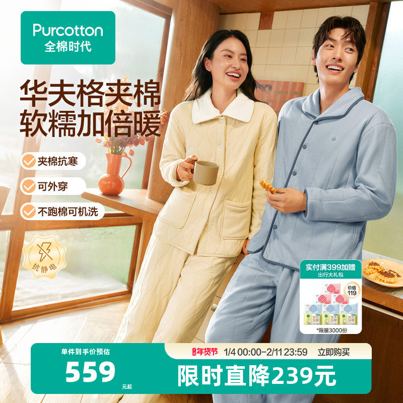 - 女冬季加厚珊瑚绒夹棉睡衣