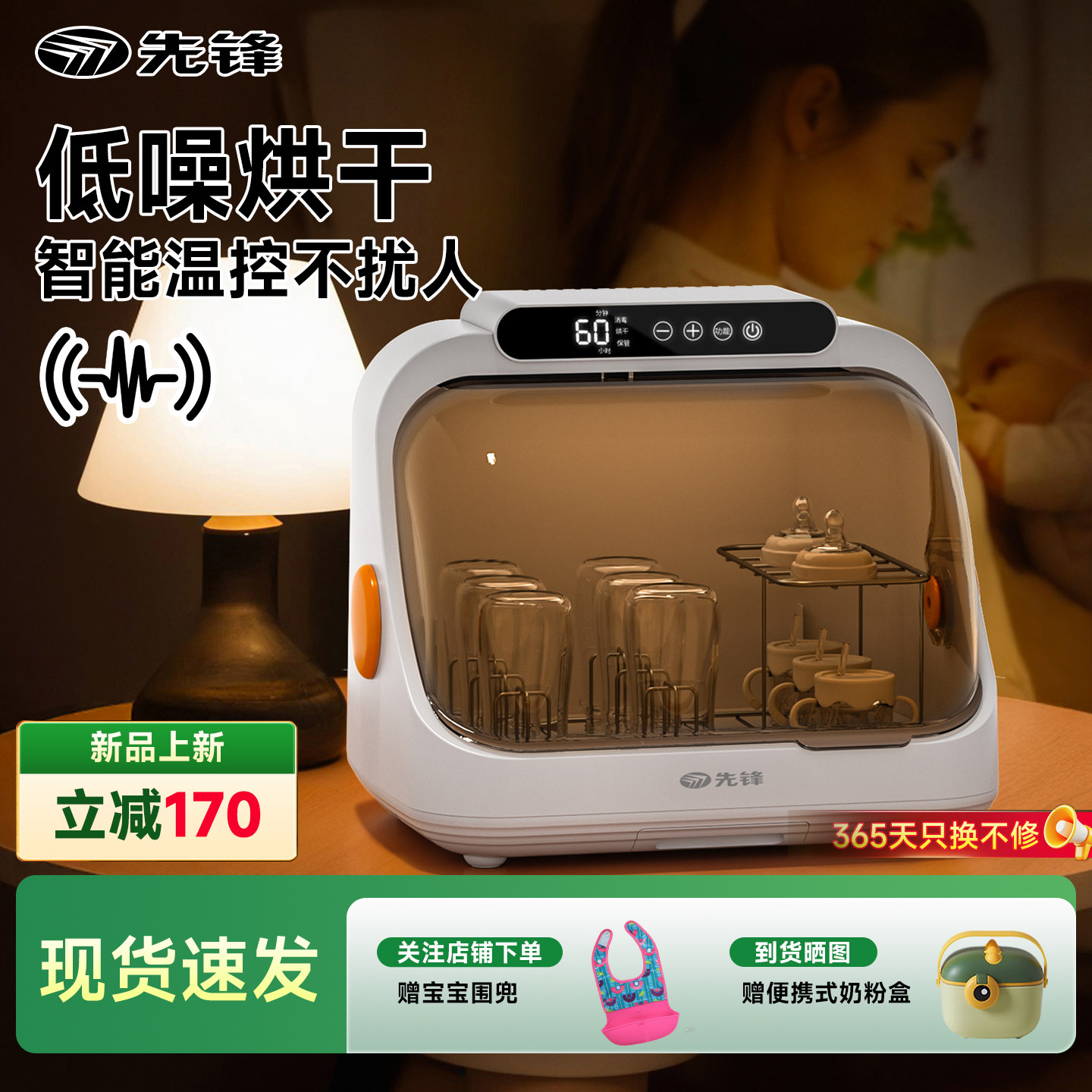 先锋奶瓶消毒柜婴儿静音宝宝专用烘干一体机紫外线消毒器二三合一
