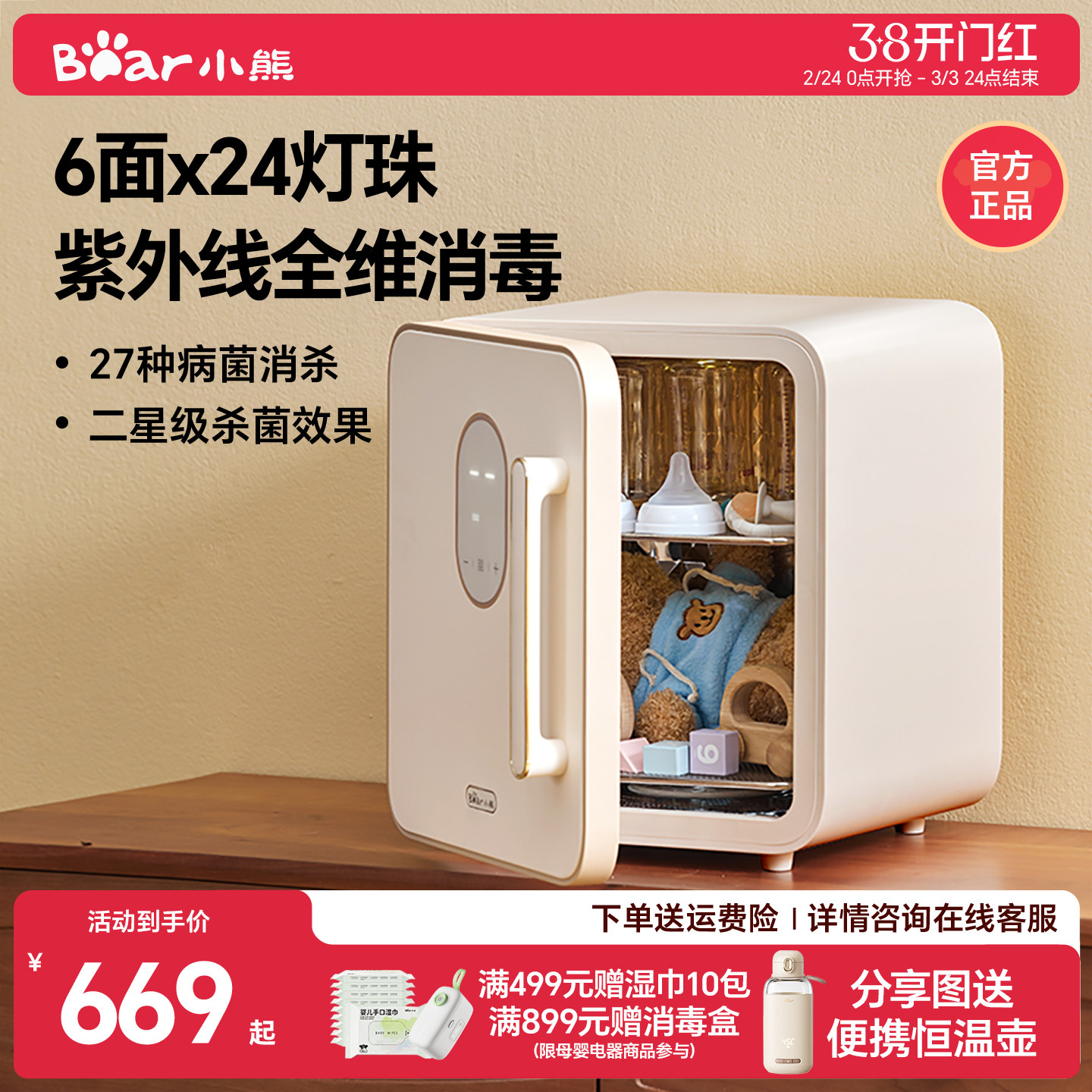小熊奶瓶消毒柜婴儿消毒烘干一体机多功能家用大容量紫外线消毒器