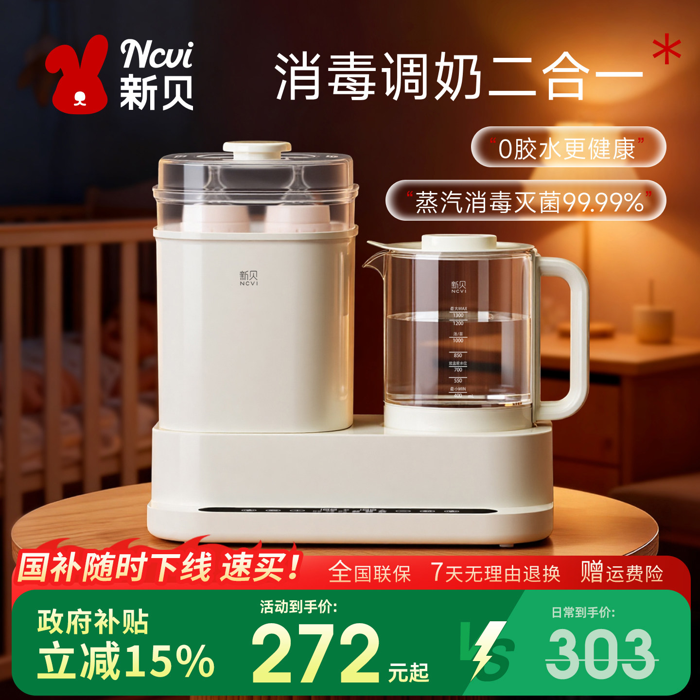 孕贝奶瓶消毒柜婴儿摇奶器泡奶机恒温水壶三合一体紫外线烘干专用