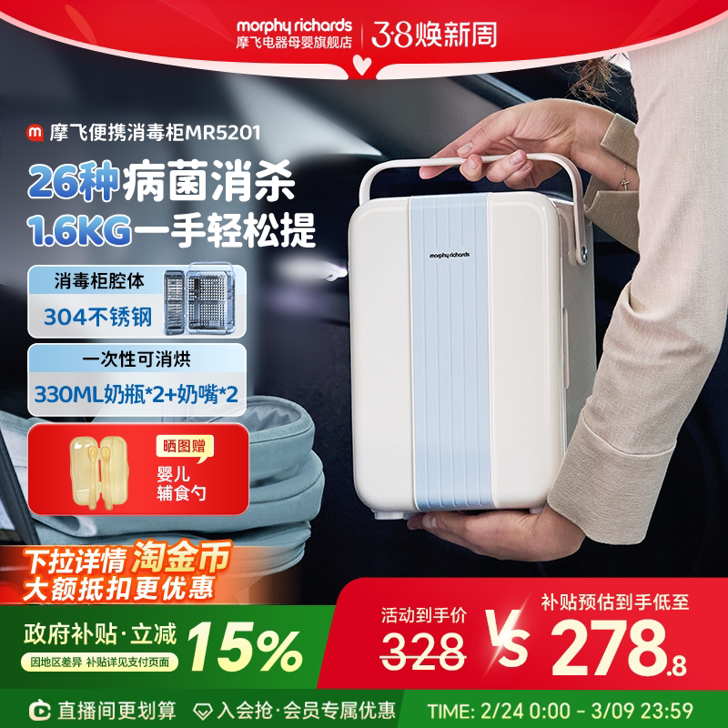 摩飞便携奶瓶消毒柜MR5201烘干一体紫外线消毒器婴儿宝宝专用小型