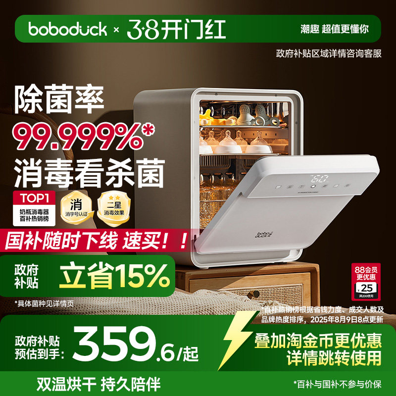 boboduck大嘴鸭奶瓶消毒柜婴儿宝宝专用紫外线消毒器烘干一体家用