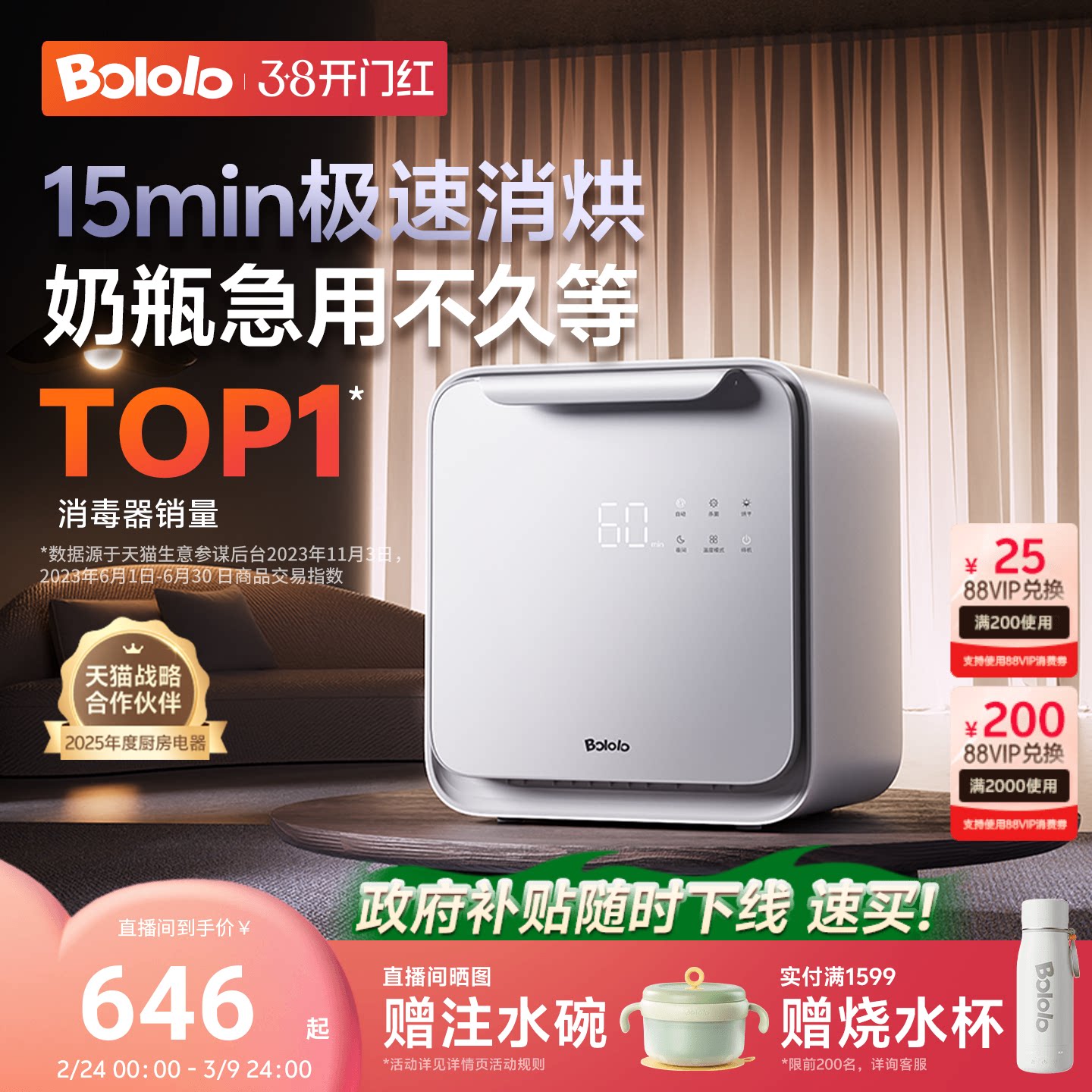 波咯咯刘海妹妹奶瓶消毒柜婴儿带烘干二合一体机宝宝紫外线消毒器