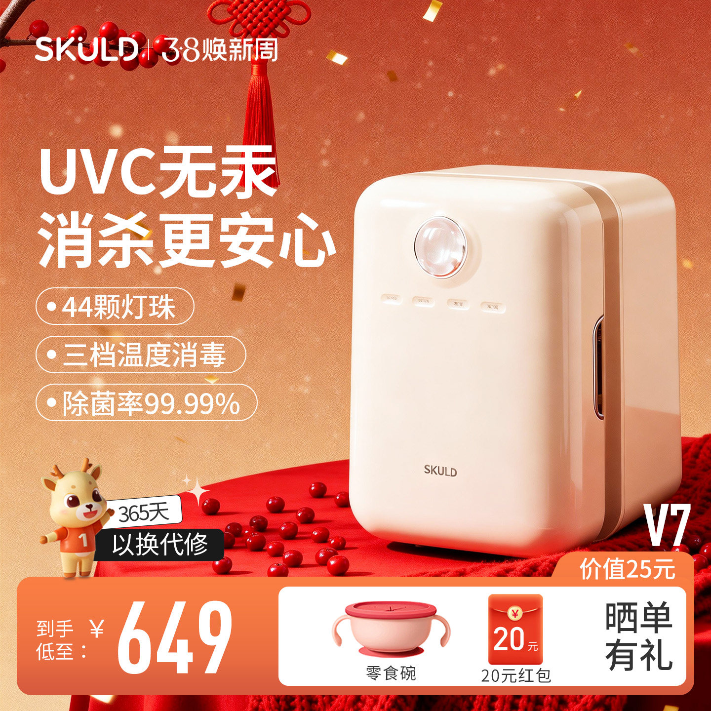 SKULD时蔻婴儿奶瓶消毒柜带烘干二合一体宝宝专用锅紫外线消毒器