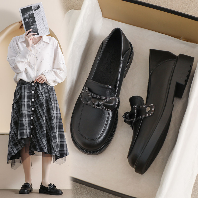 真皮小皮鞋女2025春秋英伦风黑色平底工作软底夏季豆豆舒适乐福鞋