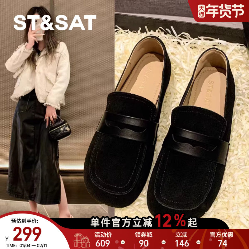 星期六真皮平底浅口单鞋女2025夏季新款淑女风配裙子豆豆鞋【直】