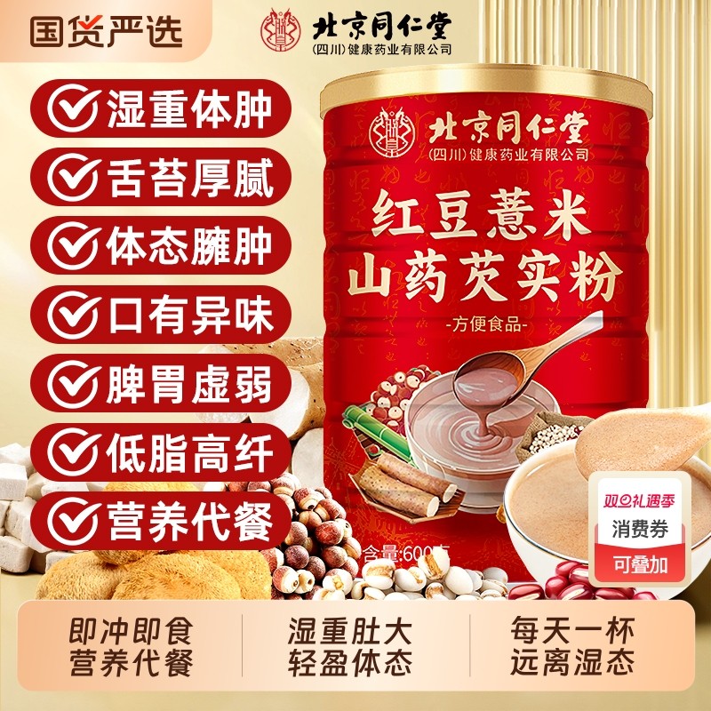 北京同仁堂红豆薏米粉去湿气养胃健脾营养低脂代餐官方正品旗舰店