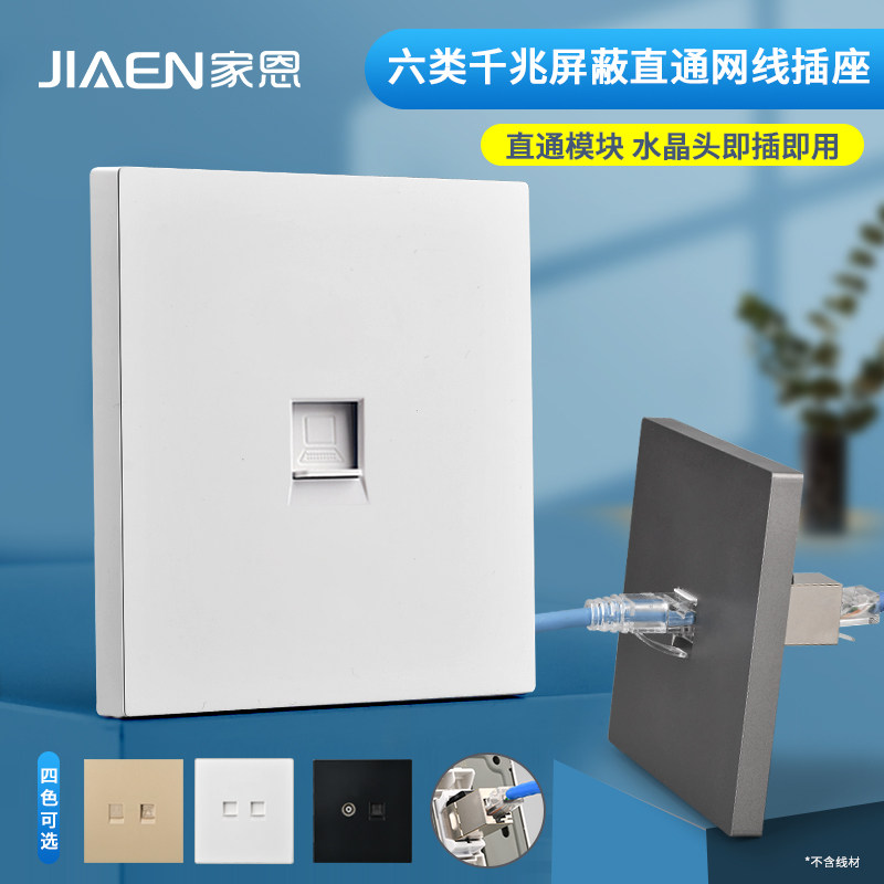 正品86型千兆网络插座过测六类免打电脑模块单双口直通款网络面板