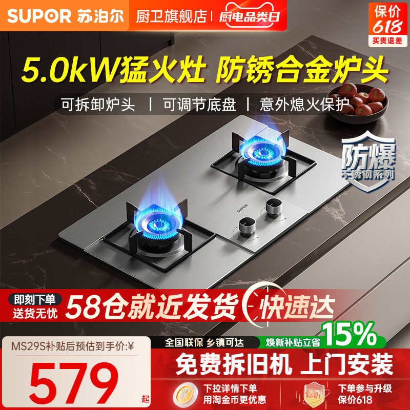 苏泊尔不锈钢燃气灶煤气灶双灶家用液化气灶具嵌入式天然气台MS29