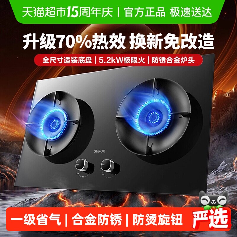 苏泊尔不锈钢燃气灶煤气灶双灶家用液化气灶具嵌入式天然气炉灶台