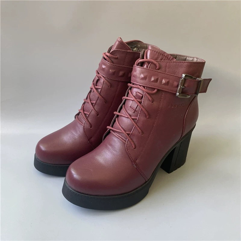 - 厚底女靴子 短靴 真皮