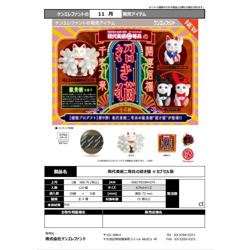 虾壳社 现货日本Kenelephant扭蛋 现代美术二等兵的招财猫 摆件