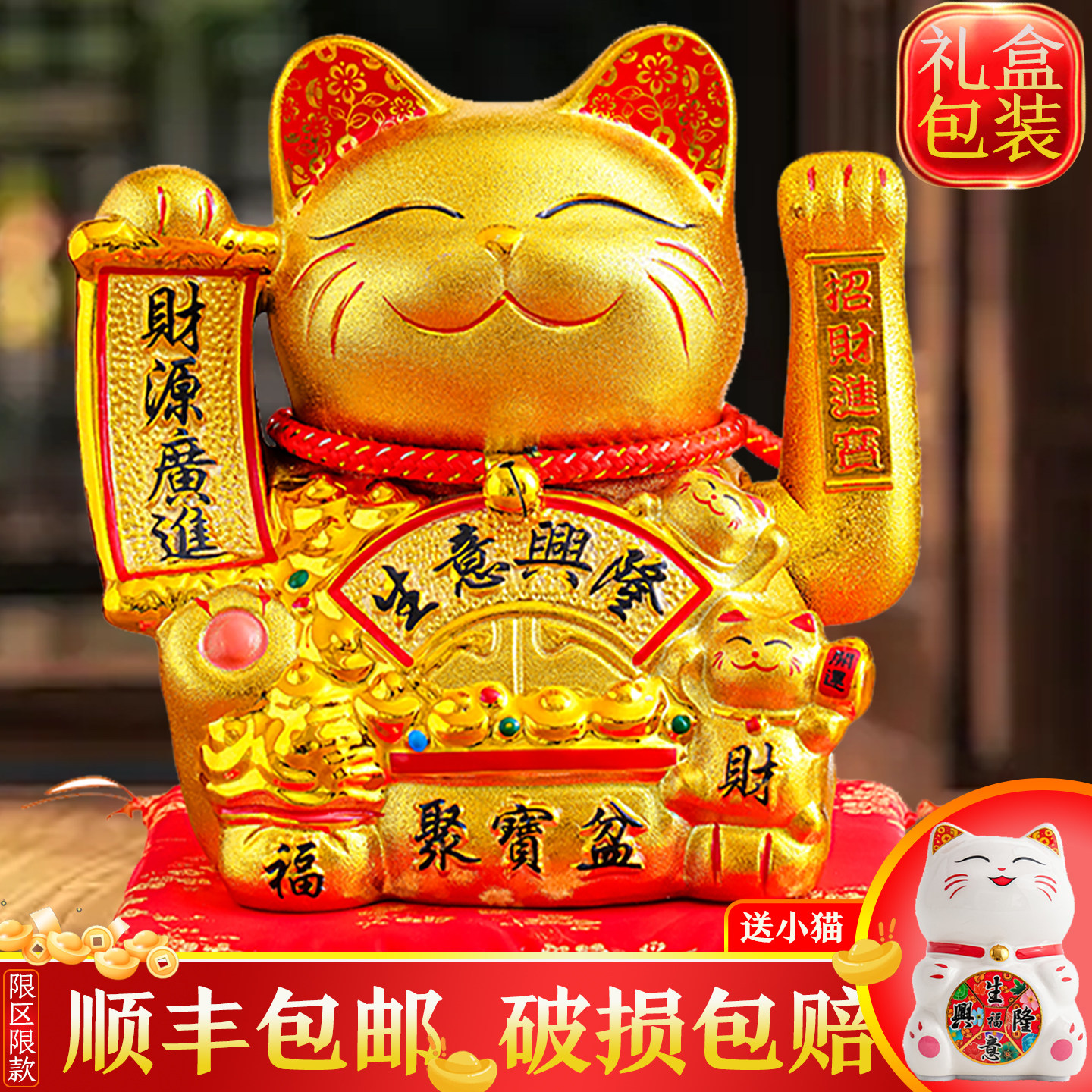 招财猫摆件陶瓷创意礼品家居装饰存钱罐客厅家用开业收银台发财猫