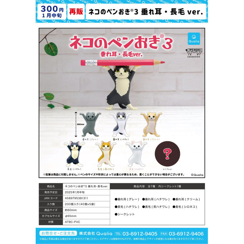 虾壳社 现货日本QUALIA扭蛋 猫笔架第三弹 再贩垂耳猫长毛猫 摆件