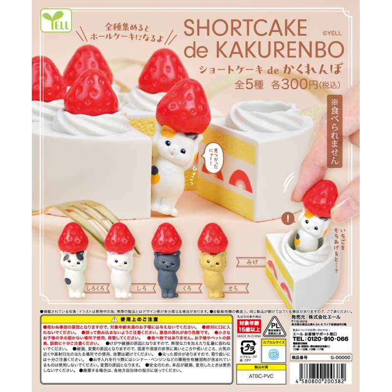 虾壳社 现货日本YELL扭蛋 躲蛋糕里的小猫 摆件 躲猫猫 可爱 草莓