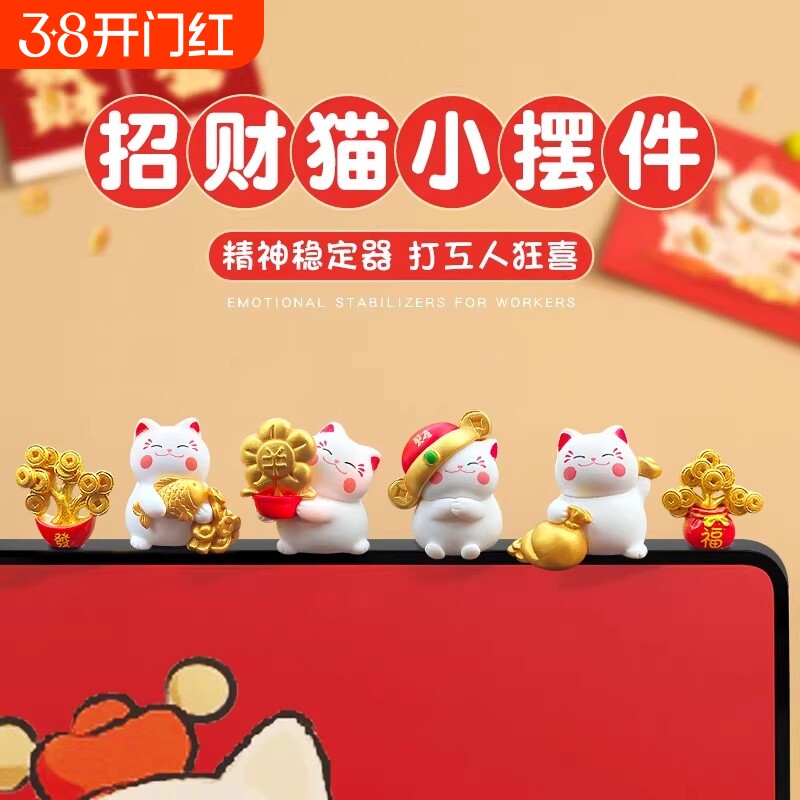 招财猫电脑屏幕小摆件显示器办公室桌面工位电视机上装饰用品玄学