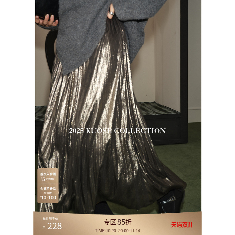 Juicy Couture橘滋半身裙女2025年秋冬新款银色气质百褶中长裙子