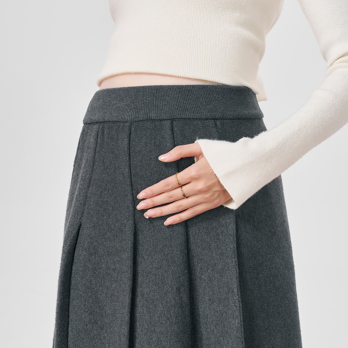 遮肉针织半身裙2025秋冬新款高腰毛线百褶显瘦a字伞裙子长款长裙