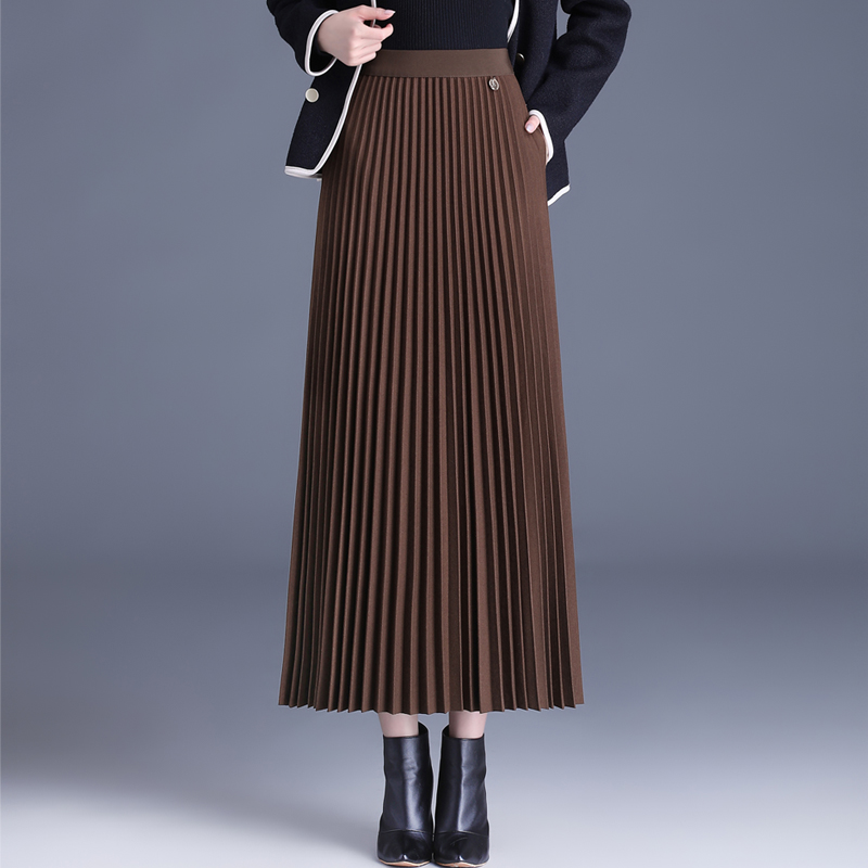 0192 美拉德山茶花褶皱百褶裙半身裙秋冬女中长款a字裙休闲长裙子