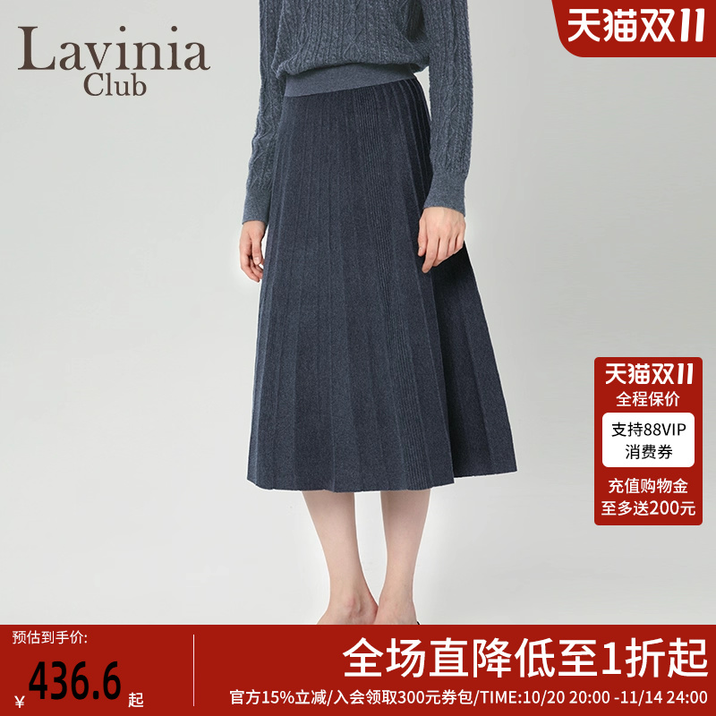 LaviniaMIU系商务风百褶半身裙秋冬新款高腰设计感中长款裙子
