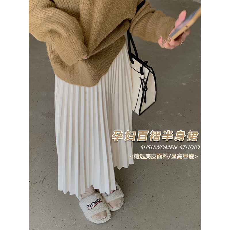 婧麒新款孕妇半身裙女孕妇裙子孕妇装秋冬孕期长款百褶孕妇裙秋装