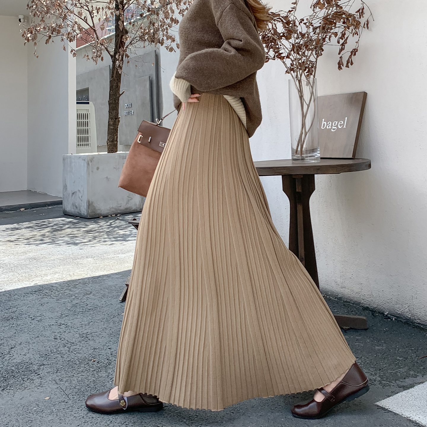 秋冬半身裙高个子加厚女冬季针织大摆裙百褶裙子显瘦长裙超长及踝