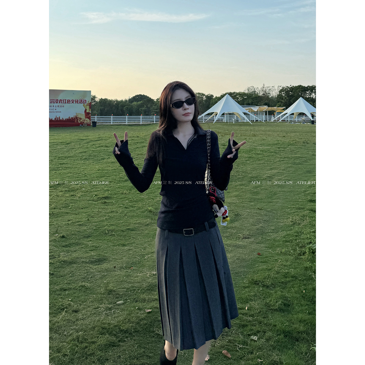 pusumede 韩女法则 中长款百褶半身裙女秋冬高腰a字裙设计感裙子