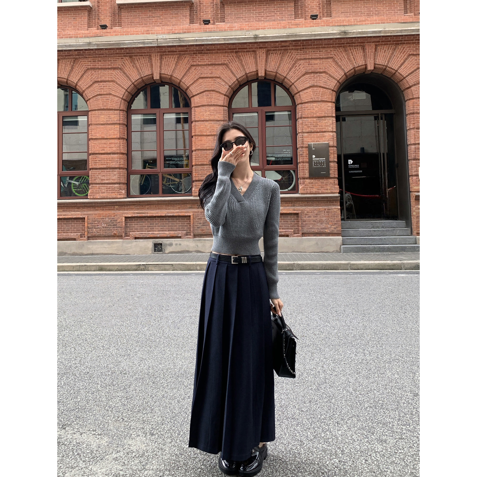 MULVAN 灰色高腰半身裙女秋冬显瘦高级感小个子长款百褶裙a字裙子
