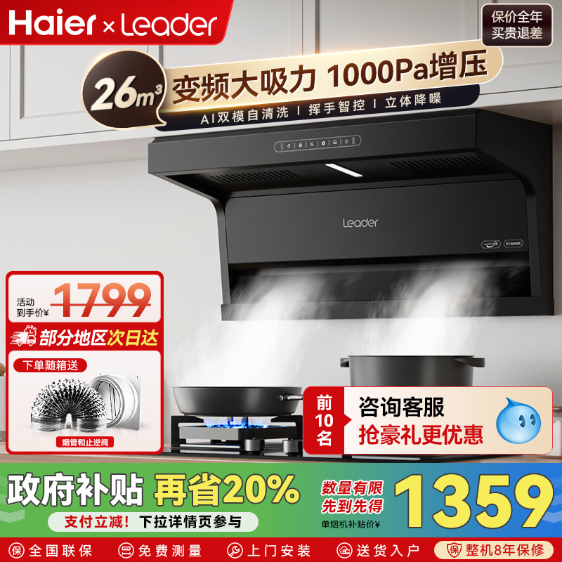 海尔变频抽油烟机燃气灶套餐大吸力家用吸烟机灶具套装厨房三件套