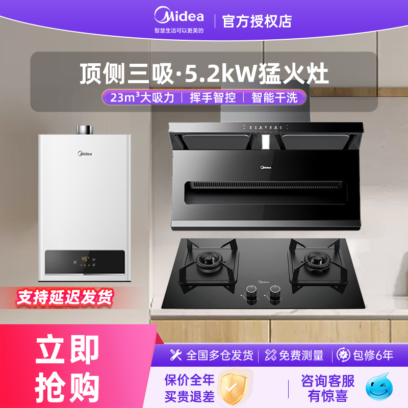 美的抽油烟机燃气灶具套餐顶吸式家用组合三件套装官方旗舰店烟机