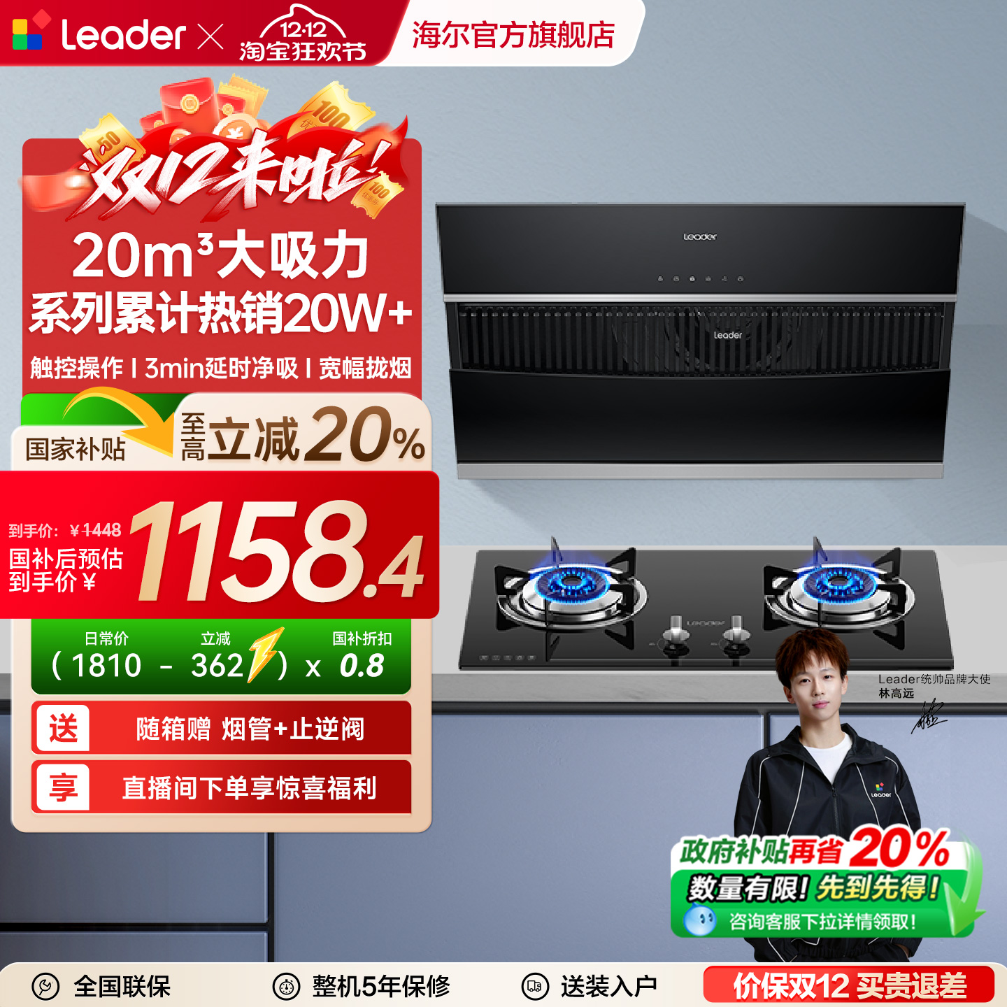 海尔智家统帅IC196侧吸抽油烟机燃气灶套餐烟机灶具套装换新补贴
