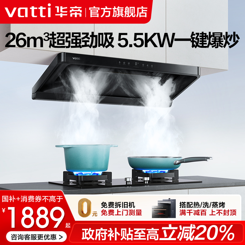 国补华帝抽油烟机燃气灶套餐小飞翼K7顶侧双吸7字型厨房烟灶套装