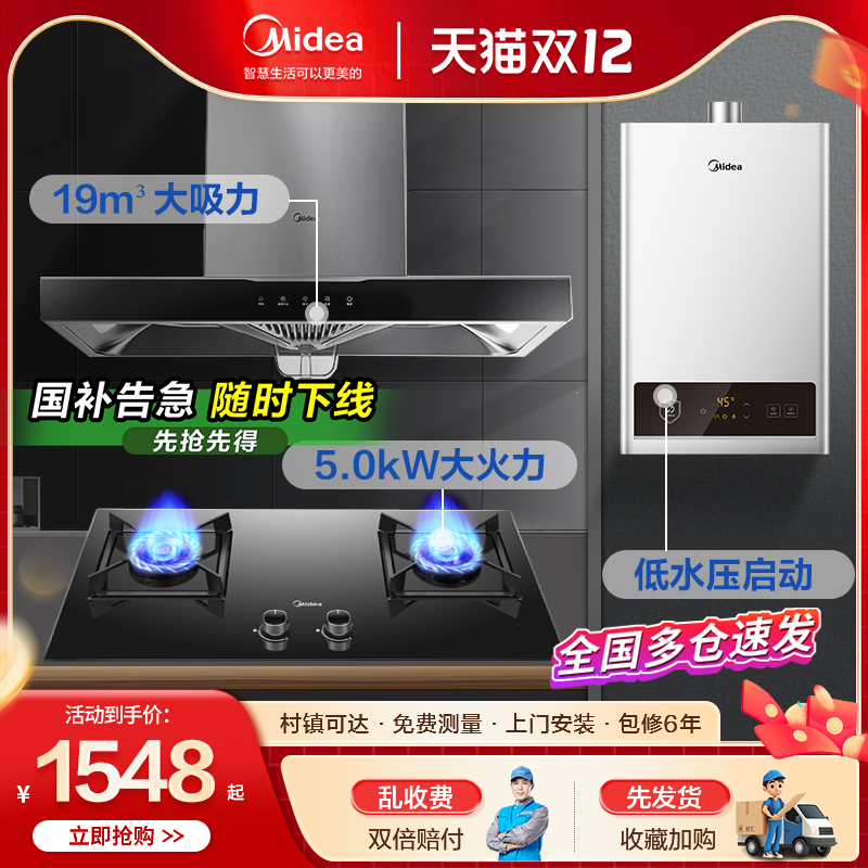 政府补贴20%美的抽油烟机燃气灶套餐烟灶具热水厨房三件套装组合