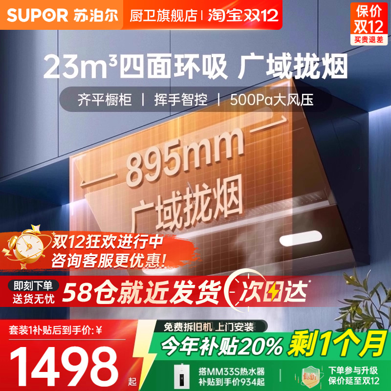 苏泊尔MT33S套装无界抽油烟机燃气灶套餐顶侧一体大吸力顶吸