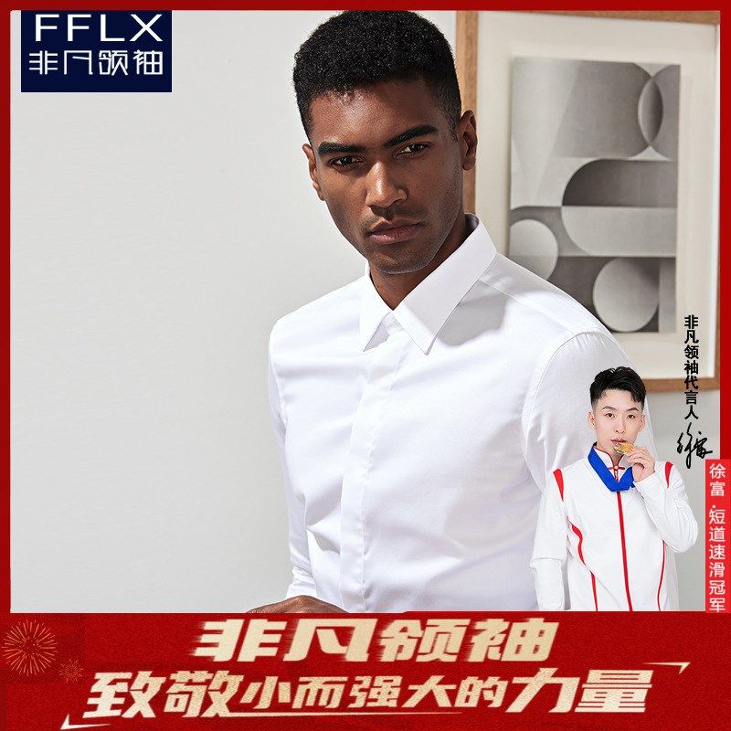 - 男休闲长袖白衬衣