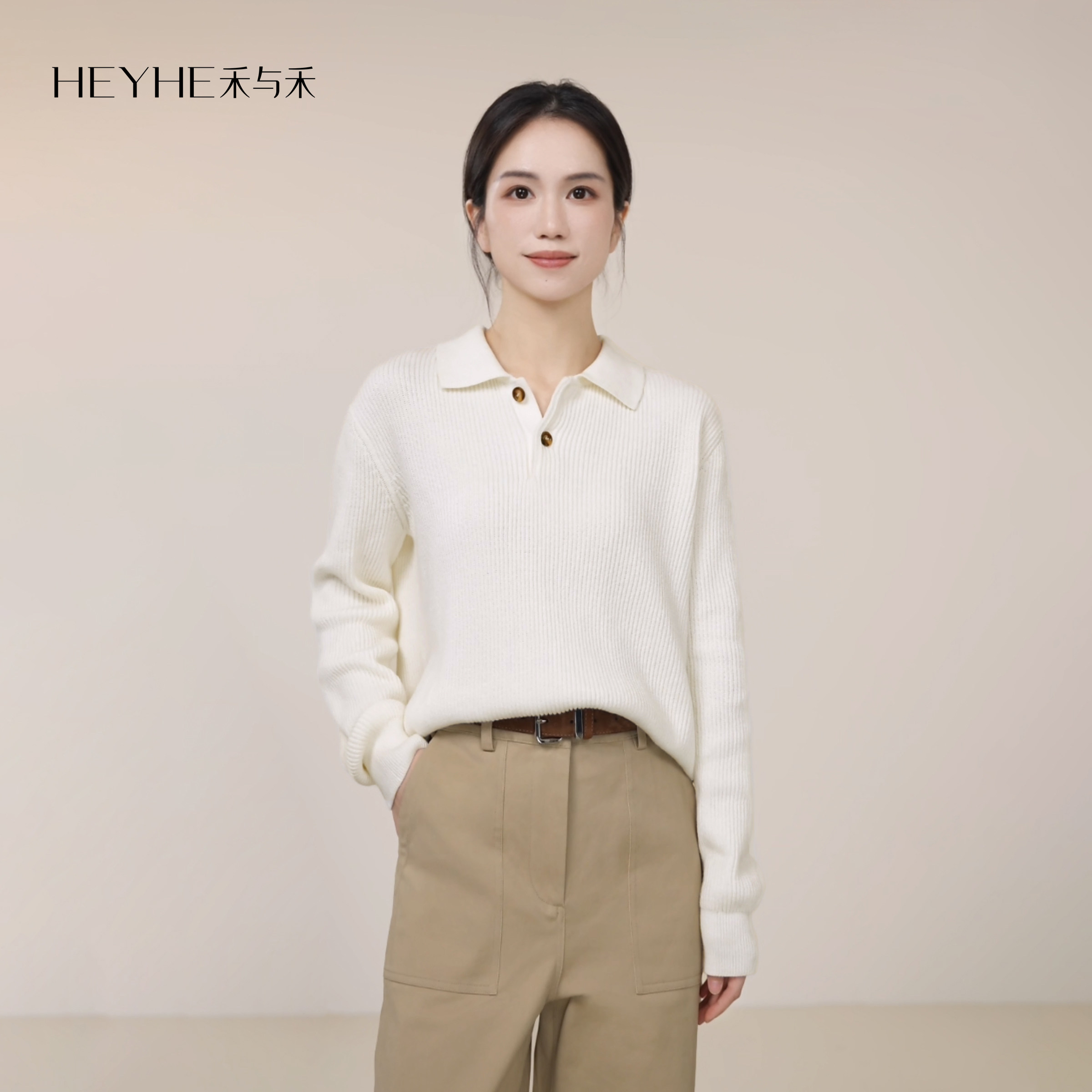 小禾【白桦树】100棉老钱风Polo领慵懒宽松简约翻领毛衣针织衫女