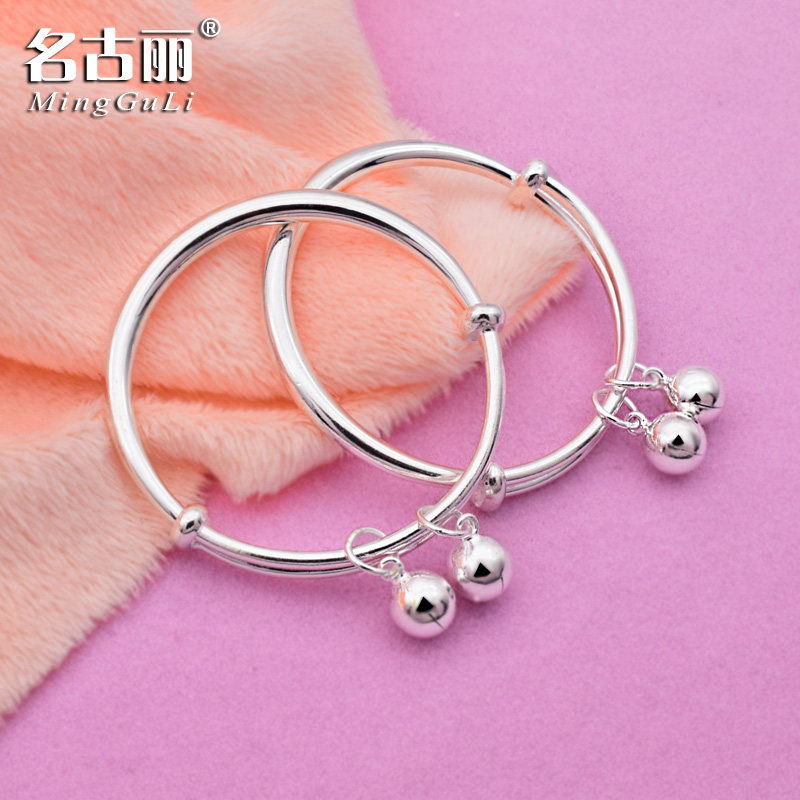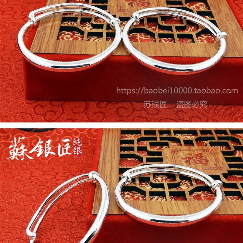 老银匠男女宝宝s999足银手镯满月脚镯婴幼儿童节周岁纯银镯子一对