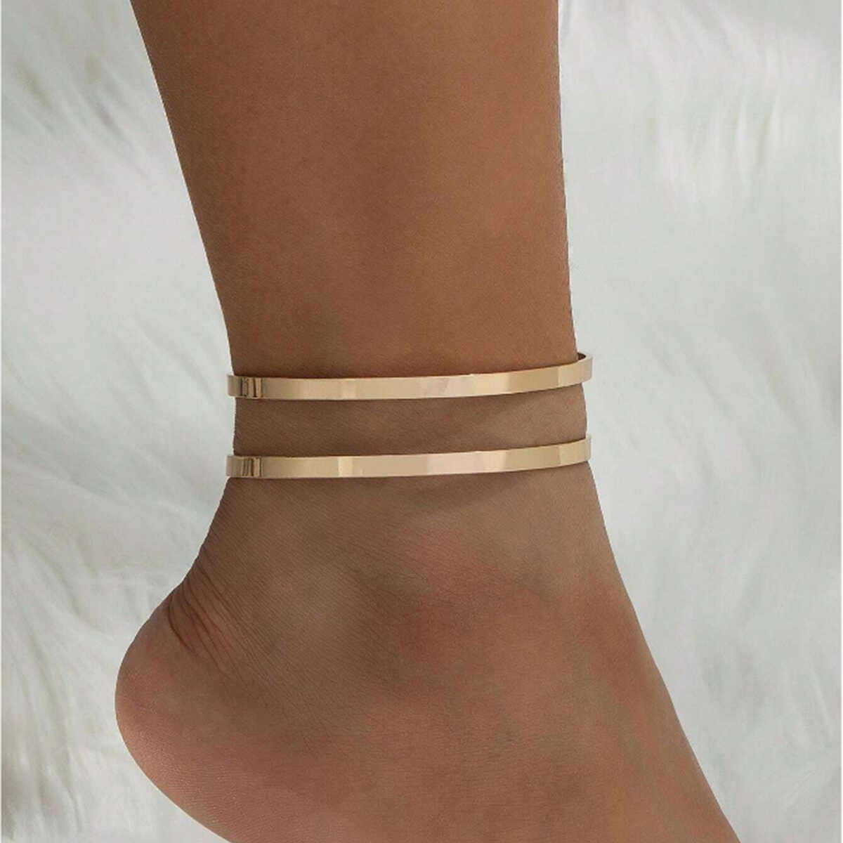 双层个性简约风格镂空脚镯金色亮面开口可调节脚饰品男女情侣同款